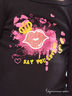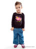 Лонгслив для девочки, темного черного цвета, с ярким контрастным принтом в желто-розовых тонах. Модель с длинными рукавами и округлым вырезом горловины. Отличный вариант для детского гардероба.