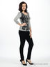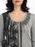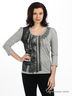 Детали: декорирован оригинальным принтом и паетками; по швам декорирован серебристыми нитями; на манжетах стразы; круглый вырез
