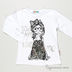 Детали: округлый вырез горловины, длинный прямой рукав слегка присборен на резинку, полочка декорирована набивным рисунком и пайетками