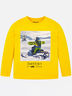 Модель с округлым вырезом горловины. Кофточка декорирована принтом.