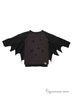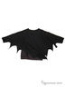 Очень оригинальный лонгслив из мягкого трикотажа. Спереди небольшой принт в виде звездочек. Рукава из ткани более темного цвета. Сзади изделие имеет «плащ», который пришит по всей длине рукавов и ворота. «Плащ» в виде крыльев летучей мыши, края необработанные. Очень оригинальная и необычная модель, которая обязательно понравится вашему маленькому моднику!