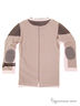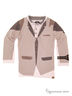 Оригинальный лонгслив-поло с длинными рукавами. Округлый вырез горловины, застежка на металлические кнопки. На локтях декоративные заплатки, на рукаве аппликация в виде часов. Модель с интересным принтом в виде кардигана смотрится очень стильно!
