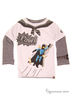 Мягкий лонгслив из 100% хлопкового волокна в стиле комиксы. Супер-герои снова в моде! Оригинальный принт говорит сам за себя. Модель с округлым вырезом горловины, на локтях декоративные заплатки, на рукаве аппликация в виде часов.