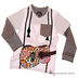 Детали: эффект двойки; V-образный вырез; длинный рукав; оригинальный принт
