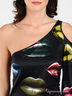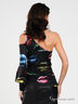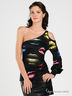 Детали: оригинальный вырез с длинным рукавом, сбоку присборено на резинку, яркий принт
