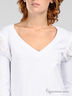 Очаровательный и комфортный лонгслив из приятного на ощупь трикотажа. V-образная горловина. Длинные рукава декорированы буфами с золотыми стразами.