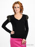 Очаровательный и комфортный лонгслив из приятного на ощупь трикотажа. V-образная горловина. Длинные рукава декорированы буфами с золотыми стразами.