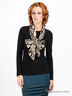 Стильный лонгслив из приятного на ощупь материала. Горловина декорирована шарфом со змеиным принтом.