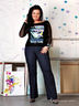 Детали: широкий округлый вырез горловины; рукава из сетчатой ткани; на полочке яркая аппликация