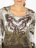 Детали: округлый вырез горловины на трикотажной ленте. Длинный рукав. Полочка декорирована стразами.