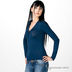 Лонгслив с необычным V-образным вырезом и декоративной сборкой на полочке.