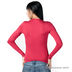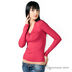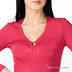 Блуза с V-образным вырезом. Полочка присборена на кольцо. Длинный прямой рукав.