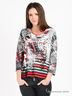 Стильный лонгслив из эластичного трикотажа с округлым вырезом горловины и длинным рукавом украшен рисунком. Отличный вариант на каждый день.