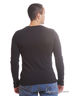 Лонгслив из мягкого меланжевого трикотажа с V-образным вырезом и длинными рукавами. Нагрудный карман с необработанным краем. Нашивка внизу.
