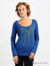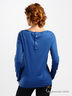 Трикотажная футболка с длинными рукавами из приятного на ощупь материала синего цвета. Широкая круглая горловина. На спинке планка-застежка на пуговицах. Полочка декорирована забавным принтом.
