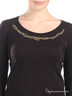 Детали: округлый вырез горловины декорирован вышивкой и стразами