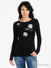 Детали: круглый вырез; длинный рукав; на полочке вышивка, нашивки и пайетки