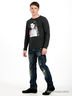 Детали: округлый вырез горловины дополнен трикотажной лентой, длинный прямой рукав, полочка декорирована оригинальным набивным рисунком