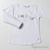 Белый лонгслив из нежнейшего трикотажного хлопка. Округлый вырез горловины. Сзади застежка на пуговки. На полочке декоративная аппликация.