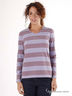 Лонгслив с длинными рукавами и V-образным вырезом. Модная расцветка в полоску. Принт со стразами спереди.