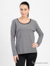 Лонгслив в полоску в рубчик, с круглым вырезом, с однотонным кантом и 3 рыбками из страз спереди. Боковые разрезы 6 см.