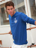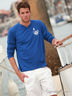 Однотонная футболка с длинными рукавами из меланжевого трикотажа, принт и нашивка на груди, V-образный вырез + планка с 3 пуговицами, нашивка внизу.