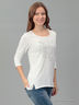 Стильный лонгслив с рукавами 3/4 и округлым вырезом горловины. Модель облегающего фигуру кроя выполнена из качественного материала привлекательной расцветки. Отличный вариант на каждый день.