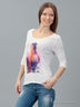 Отличный лонгслив с рукавами 3/4 и округлым вырезом горловины. Изделие комфортного покроя выполнено из приятного к телу материала и декорировано принтом. Прекрасный вариант на каждый день.
