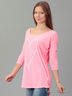 Лонгслив с рукавами 3/4 и округлым вырезом горловины. Модель выполнена из качественного материала привлекательной расцветки. Отличный вариант на каждый день.