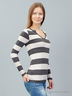 Лонгслив - стильная и практичная вещь на каждый день. Модель с длинными рукавами и V-образным вырезом горловины. Украшено изделие рисунком в полоску.