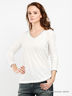 Классический лонгслив из тонкого, мягкого трикотажа. V-образный вырез горловины. Длинные облегающие рукава. Ворот, манжеты рукавов и низ изделия дополнены окантовкой с тонкой полосой.
