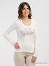 Футболка с длинными рукавами и округлым вырезом горловины. Спереди модель декорирована контрастным принтом. Отличный вариант на каждый день.