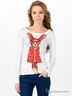 Детали: длинный рукав, округлый вырез горловины, полочка декорирована аппликацией