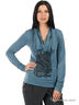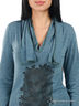 Детали: V-образный вырез, переходящий в декоративный шарфик; длинный рукав с манжетой; оригинальная аппликация