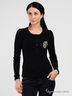 Детали: округлый вырез горловины, длинные облегающие рукава, застежка на планку с пуговицами, нагрудный карман декорирован брендовой вышивкой и стразами.