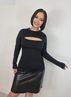 Трендовая модель с длинным рукавом сшита из тонкого и плотного, приятного к телу материала с фактурой в рубчик. В составе эластичной, мягкой и хорошо дышащей ткани хлопок и полиэстер. Удлиненная обтягивающая водолазка с круглым горлом украшена оригинальным вырезом на груди, красиво подчеркивающим декольте. Она отлично садится по фигуре, формируя женственный силуэт.Рост модели 170 см