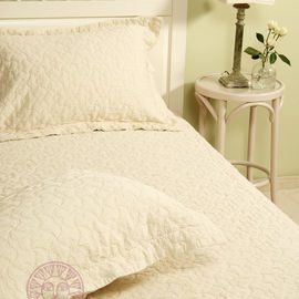 Покрывало с двумя наволочками цвет бежевый с зеленым 240х260см