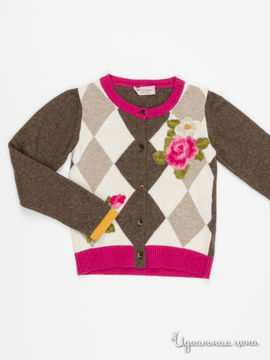 Кардиган MONNALISA для девочки, цвет коричневый, белый