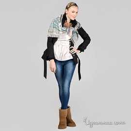 Шуба Lux Mix женская, цвет бежевый / черный / серый