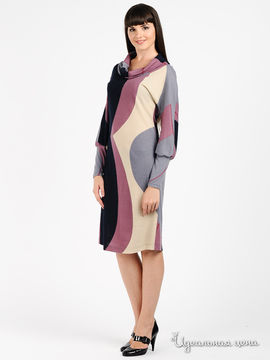 Платье MadamT женское, цвет лиловый / темно-синий / бежевый