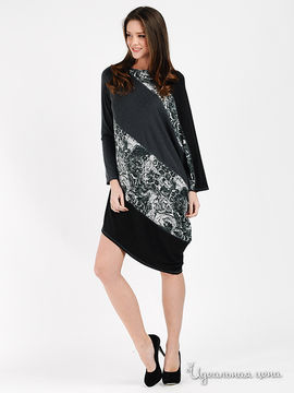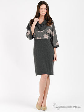 Платье MadamT женское, цвет темно-серый меланж / коричневый