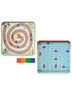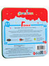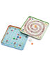 В комплекте: металлическая коробка с 2 магнитными полями - "спираль 58 шагов" на крышке и поле 8х8=64 шага на дне, 4 магнитные фишки разного цвета ∅1см, игральный кубик 1х1см.