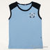 Майка прямого силуэта декорирована контрастными вставками и аппликацией.