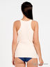 Мягкая майка из тонкой хлопковой ткани в рубчик. Широкие бретели и округлый вырез горловины дополнены трикотажными лентами. Спинка-борцовка