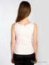 Легкая домашняя майка без рукавов. Круглый вырез с присборенными краями, оригинальный принт, на полочке декор из атласных ленточек.