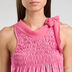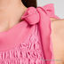 Тонкий мягкий, приятный телу трикотаж. Свободный силуэт. Вырез горловины декорирован широкой лентой из креп-шифона жатой фактуры, которую можно завязать в бант. На полочке многорядные тонкие резинки создают декоративные буфы. Низ изделия "посажен" на широкую манжету.
