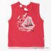 Детали: округлый вырез горловины, широкие лямки, вырез "капля" и застежка на кнопку на спинке, полочка декорирована нашивкой и аппликациями