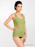 Майка из тонкой трикотажной ткани, прямого силуэта. Округлый вырез горловины и проймы дополнены трикотажными лентами.