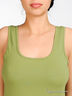 Майка из тонкой трикотажной ткани, прямого силуэта. Округлый вырез горловины и проймы дополнены трикотажными лентами.