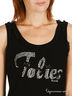 Майка прямого кроя из тонкого трикотажа. Глубокий вырез горловины и проймы рукавов украшены шифоновой рюшей. Передняя полочка декорирована стразами.